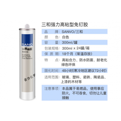首页 > 建筑建材 > 五金附件 > 三和(SANVO)MS315 300ml免钉胶 环保无异味比钉牢 金属木头镜子强力胶水
