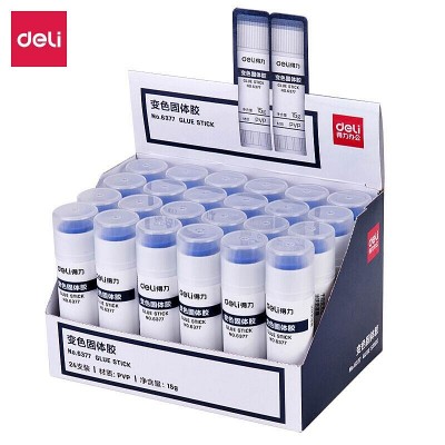 得力6377固体胶15G(浅蓝) )15g可变色PVP固体胶水/胶棒 牢固顺滑易标记 干燥后无色