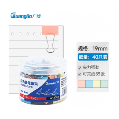 广博(GuangBo)40只19mm彩色长尾夹票夹5#金属燕尾夹票据夹子 办公用品W18004
