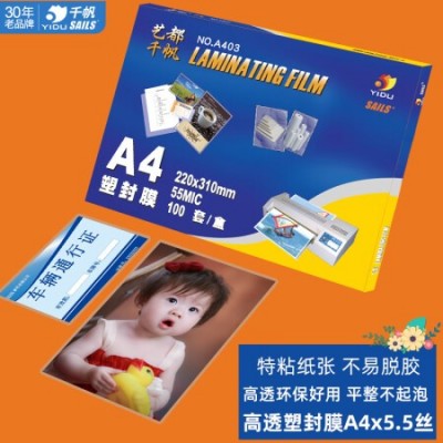 千帆(SAILS)塑封膜a4 5.5丝 塑封机过塑膜 过塑机封塑膜 过塑纸过胶纸护卡膜过胶膜A403 220x310mm 100张