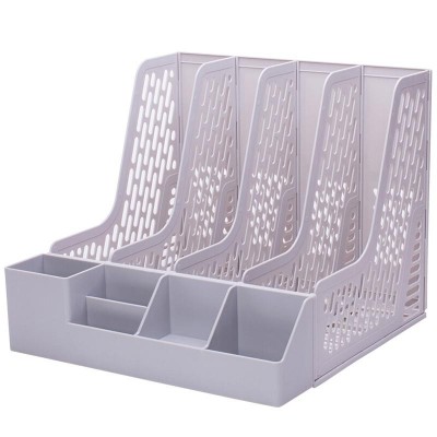 得力(deli)78981 加厚型带笔筒四联文件框 灰白色