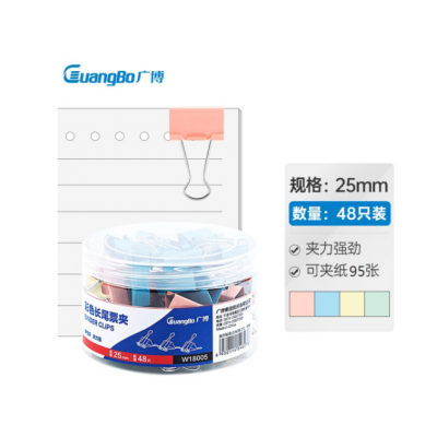 首页 > 办公用品 > 文具 > 广博(GuangBo)48只25mm彩色长尾夹票夹4#金属燕尾夹票据夹子 办公用品W18005