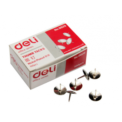 deli)0020 镀镍图钉 100枚/盒 办公文具用品