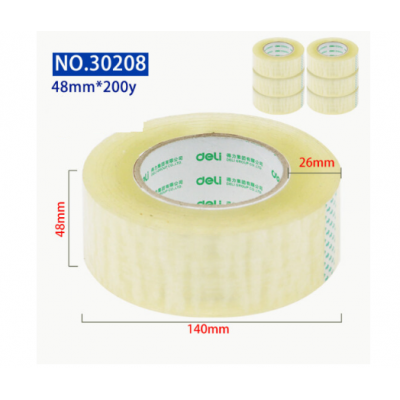 (deli)30208 透明封箱胶带 大号打包胶带纸4.8cm高粘度不易断胶布快递封口宽胶带封箱带 宽4.8*长200