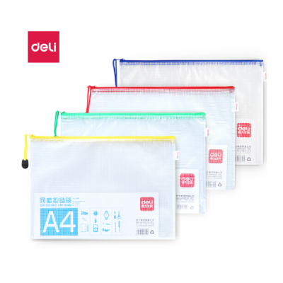 (deli)5654 A4软质网格拉链袋 耐用文件袋资料袋