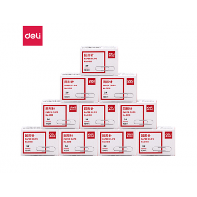 (deli)0018 3#金属回形针 镀镍防锈曲别针 100枚/盒 10盒装 办公用品