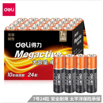 得力(deli) 5号7号碱性电池 适用于玩具血压计血糖仪电子门锁鼠标遥控器等 7号 24粒装 18507
