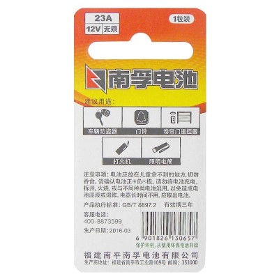 首页 > 电力工业设备 > 其他电力工业设备 > 碱性蓄电池设备 > 南孚(NANFU) 23A 无汞碱性电池 1粒/卡