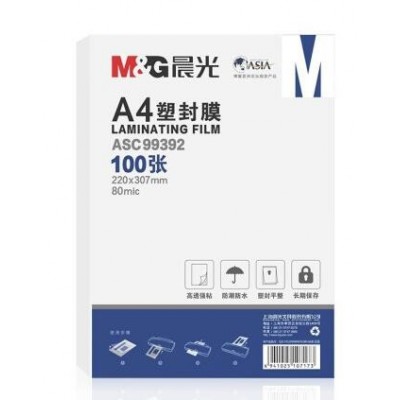 晨光(M&G) ASC99392 A4/100张 80mic透明高清塑封膜 220*307mm文件照片过塑膜