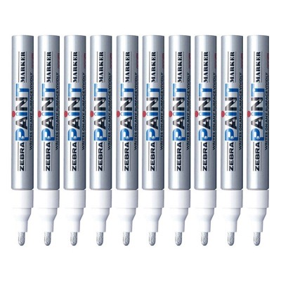 斑马牌(ZEBRA)油漆笔 油性记号笔 大号物流笔签名笔/马克笔 PAINT-MOP 银色 10支装