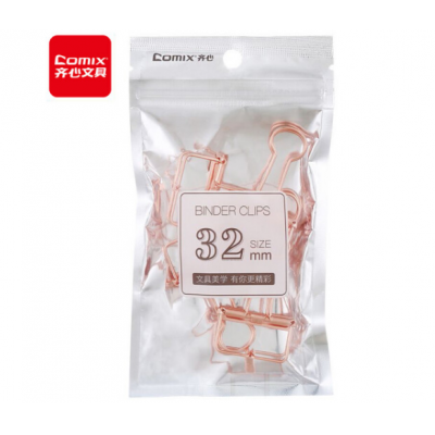 齐心(Comix)4只/袋32mm镂空长尾夹玫瑰金 办公用品B4040