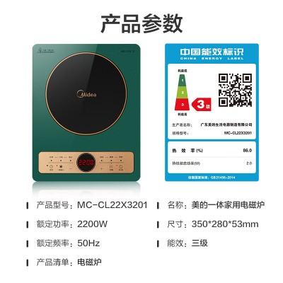美的(Midea) 电磁炉家用带锅 炒菜火锅磁炉 多功能一体大功率 可定时 电磁炉套装九档火力 爆炒/煮套装