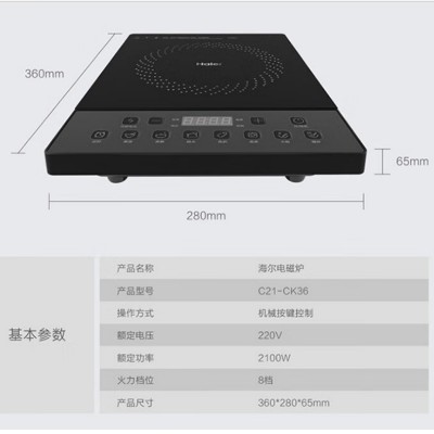 首页 > 电气设备 > 烹调电器 > 海尔(Haier)电磁炉 独立操控按键滑控火力 速热多功能四重防水电磁炉C21-CK36