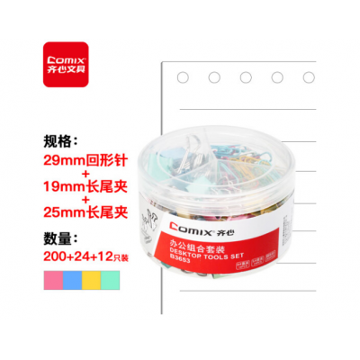 首页 > 办公用品 > 文具 > 齐心(COMIX) 回形针29mm长尾夹19mm+25mm办公用品套装B3653