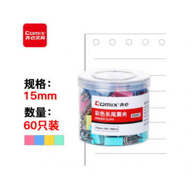 齐心(Comix)长尾夹票夹 彩色金属 6#15mm 60只/筒EB401