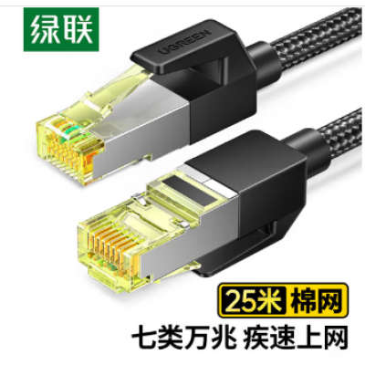 绿联(UGREEN)NW150 七类网线 Cat7万兆网络连接线 7类宽带电脑8芯屏蔽监控纯铜双绞网络跳线 25米