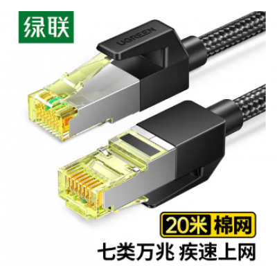绿联(UGREEN)NW150 七类网线 Cat7万兆网络连接线 7类宽带电脑8芯屏蔽监控纯铜双绞网络跳线 20米 30793