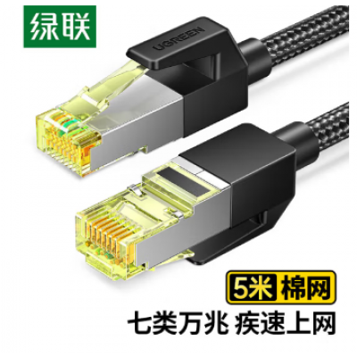 绿联(UGREEN)NW150 七类网线 Cat7万兆网络连接线 7类宽带电脑8芯屏蔽监控纯铜双绞网络跳线 5米
