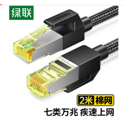 绿联(UGREEN)NW150 七类网线 Cat7万兆网络连接线 7类宽带电脑8芯屏蔽监控纯铜双绞网络跳线 2米