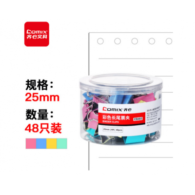 齐心(Comix)长尾夹票夹 彩色金属 4#25mm 48只/筒EB403