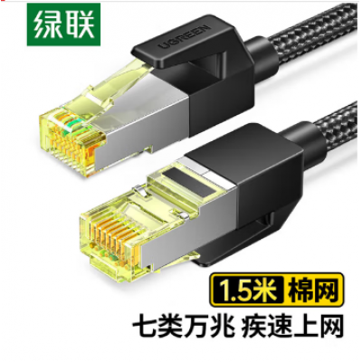 绿联(UGREEN)NW150 七类网线 Cat7万兆网络连接线 7类宽带电脑8芯屏蔽监控纯铜双绞网络跳线 1.5米