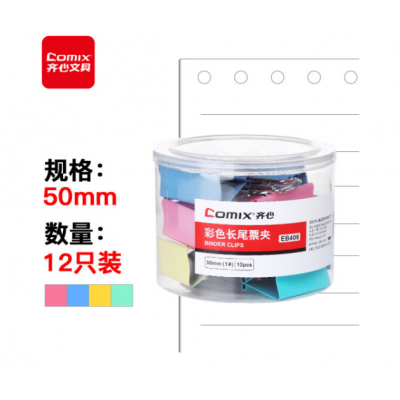 齐心(Comix)长尾夹票夹 彩色金属 1#50mm 12只/筒EB406