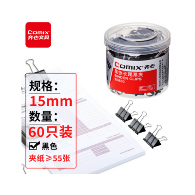 齐心(Comix)长尾夹票夹 黑色金属 6#15mm 60只/筒B3630