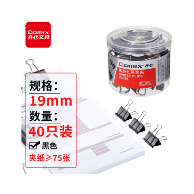 首页 > 办公用品 > 文具 > 齐心(Comix)长尾夹票夹 黑色金属 5#19mm 40只/筒B3629