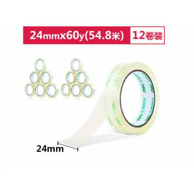 得力(deli)高品质高透明封箱胶带打包胶带 24mm*60y*50um 12卷/筒 办公用品 30133
