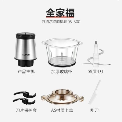 首页 > 电气设备 > 烹调电器 > 苏泊尔(SUPOR)绞肉机家用电动 不锈钢多能料理机 绞馅机碎肉打肉搅肉机切菜搅拌机JR05S-300(双刀)