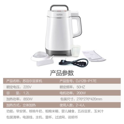 苏泊尔(SUPOR)豆浆机1.2L大容量破壁免滤密闭熬煮智能预约八大功能家用多功能搅拌机料理机DJ12B-P17E