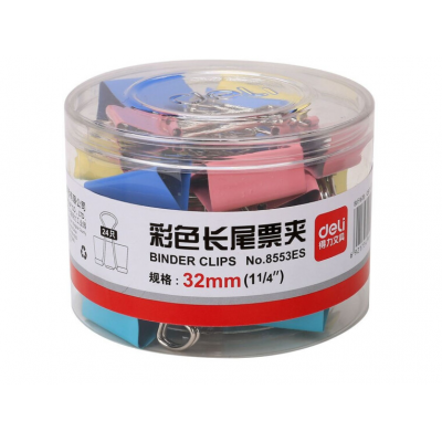 得力8553ES彩色长尾票夹筒装(得力8553ES彩色长尾票夹筒装(混)(24只/筒)混)(24只/筒)