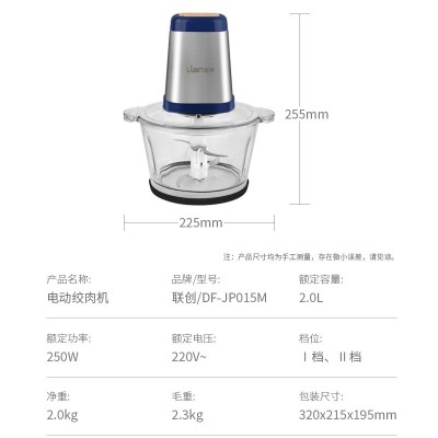首页 > 电气设备 > 烹调电器 > 联创(LIAN) 联创绞肉机家用电动小型搅拌机打馅碎菜多功能料理破壁机碎肉机DF-JP015M 小型搅拌机