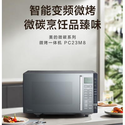 美的(Midea)微碳系列 900w智能变频微波炉 附烤箱功能 自动调温 两种烧烤模式 不锈钢腔体(PC23M8)