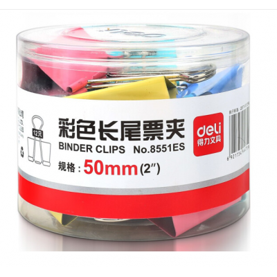 得力8551ES彩色长尾票夹筒装(混)(12只/筒)