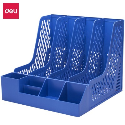 得力(deli)四联带笔筒收纳桌面文件框 多功能镂空文件栏 蓝色78981
