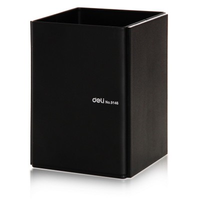 得力(deli) 收纳笔筒 简约黑色商务办公收纳 办公室用笔桶 收纳笔筒 9146金属方形笔筒