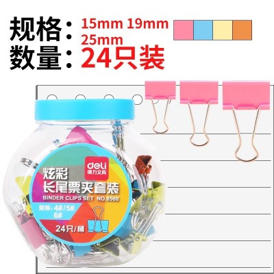 得力(deli)8560票夹长尾票夹金属票据夹燕尾夹文件资料架24只筒颜色随机