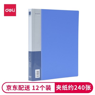 得力(deli)3孔打孔文件夹 A4三孔活页夹 O型多孔档案夹资料夹子 A4 蓝色 12个装 5384