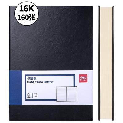 首页 > 办公用品 > 文具 > 得力(deli) 3185 笔记本文具皮面商务记事本16K大号本子160页加厚办公笔记本定制logo 黑色