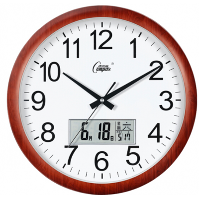 首页 > 仪器仪表 > > 康巴丝 38cm 挂钟 15英寸 万年历钟表挂 石英钟挂表3128Y 木纹日历款