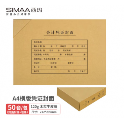 西玛(SIMAA)A4凭证封面套包50套(封面+包角)木浆120g 299*212mm 配套a4记账凭证纸费用报销单据FM152B-50