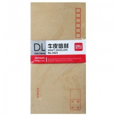 得力(deli)5号信封 牛皮纸 小号邮局信封袋子 5号(20个/包) 3423