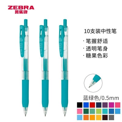 斑马牌(ZEBRA)JJ15 按动中性笔 签字笔 0.5mm子弹头啫喱笔水笔 彩色学生考试笔 蓝绿色 10支装