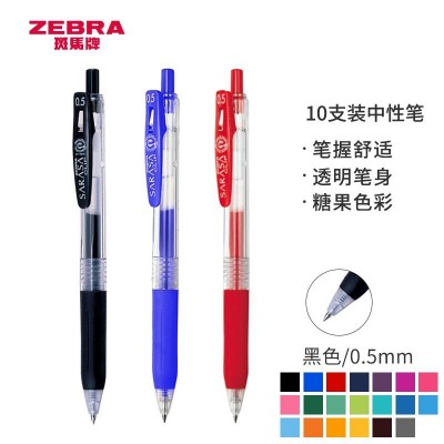 斑马牌(ZEBRA)JJ15 按动中性笔 签字笔 0.5mm子弹头啫喱笔水笔 彩色学生考试笔 黑色 10支装
