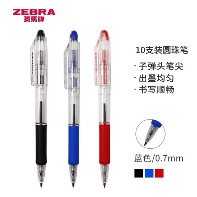 斑马牌(ZEBRA)圆珠笔 真美笔系列 0.7mm子弹头按压式原子笔中油笔 KRB-100 蓝色 10支装