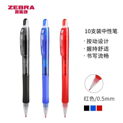 首页 > 办公用品 > 文具 > 斑马牌(ZEBRA)中性笔 真美笔系列 0.5mm子弹头按压签字笔 学生考试笔 JJZ68 红色 10支装