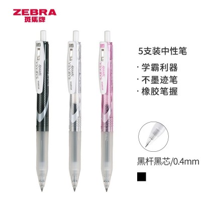 斑马牌(ZEBRA)中性墨水圆珠笔 Speedy速记学霸笔 0.4mm子弹头大容量手账笔 JJSZ33 黑色杆黑芯 5支装
