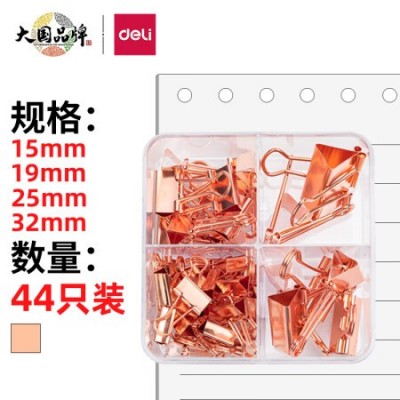 得力(deli)44只组合装玫瑰金长尾夹78205燕尾夹/票夹 中号+小号(32mm*2只+25mm*5只+19mm*12只+15mm*25只)
