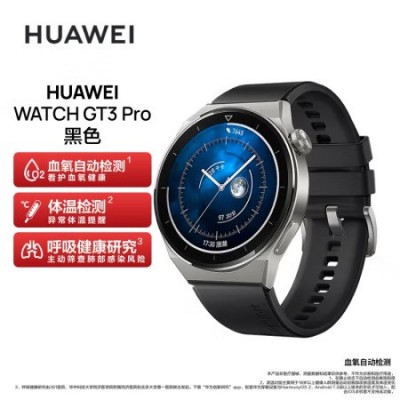 HUAWEI WATCH GT3 PRO 黑色氟橡胶表带 华为手表 运动智能手表 强劲续航/蓝牙通话/ECG心电分析 46mm